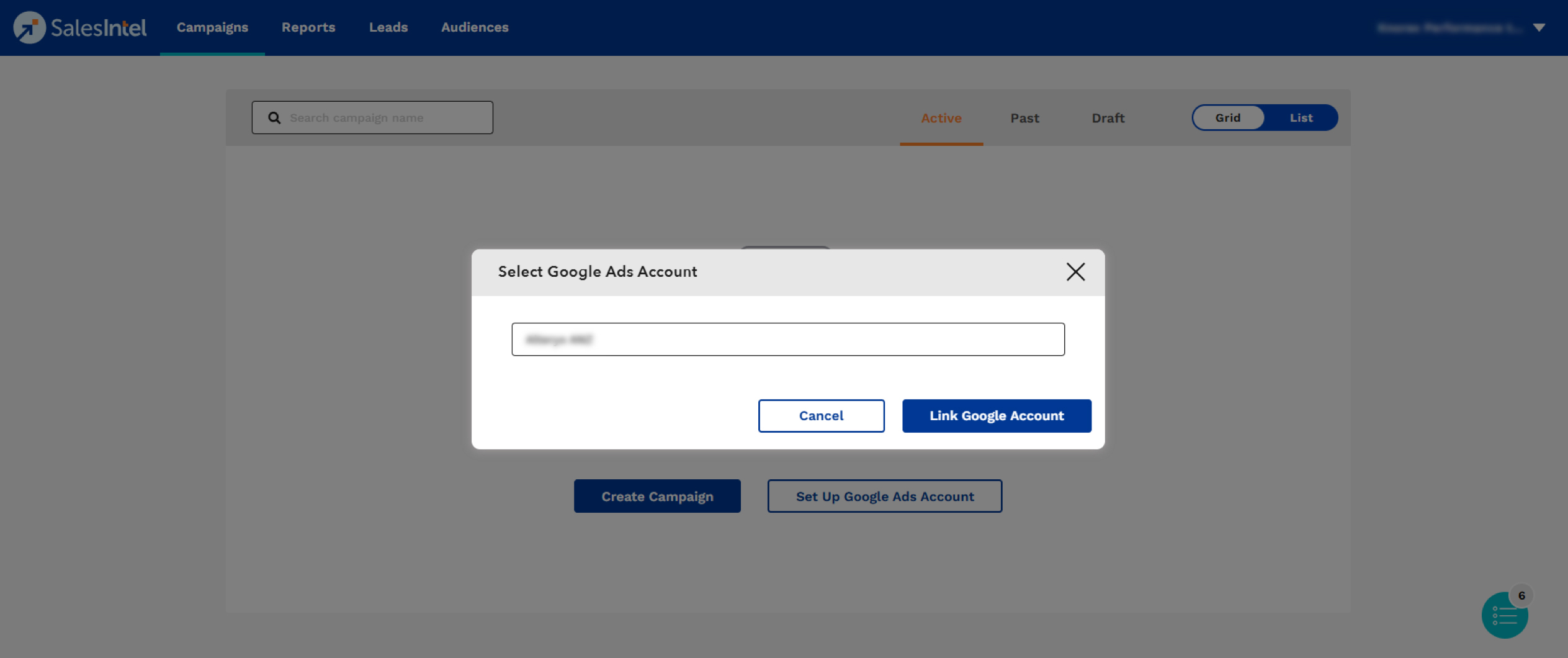Select the Google Ads account that you would want to link from the drop down list.