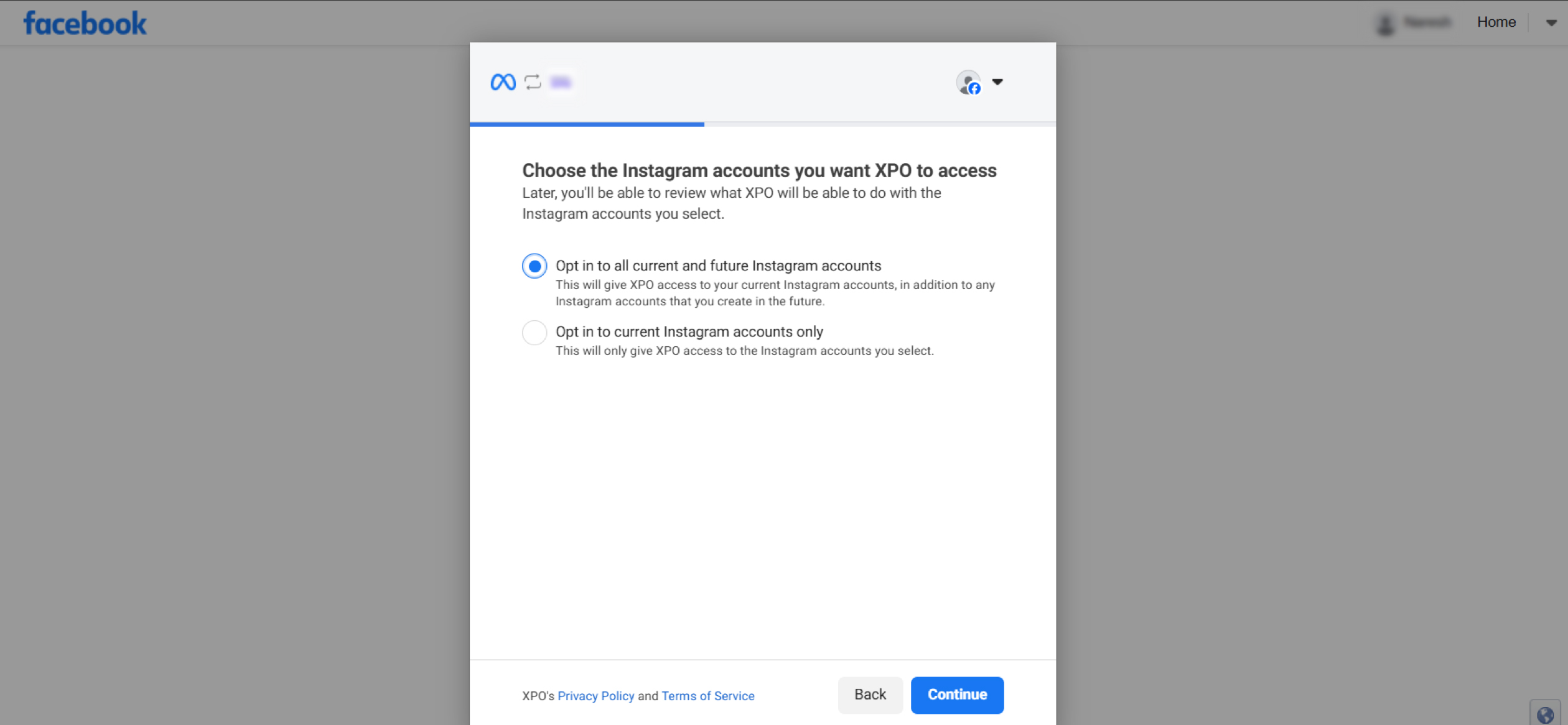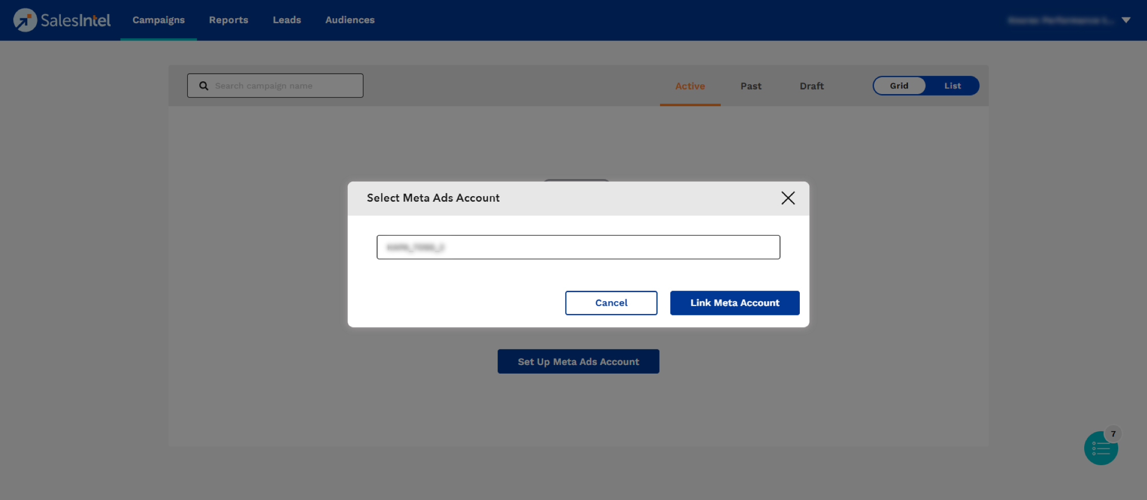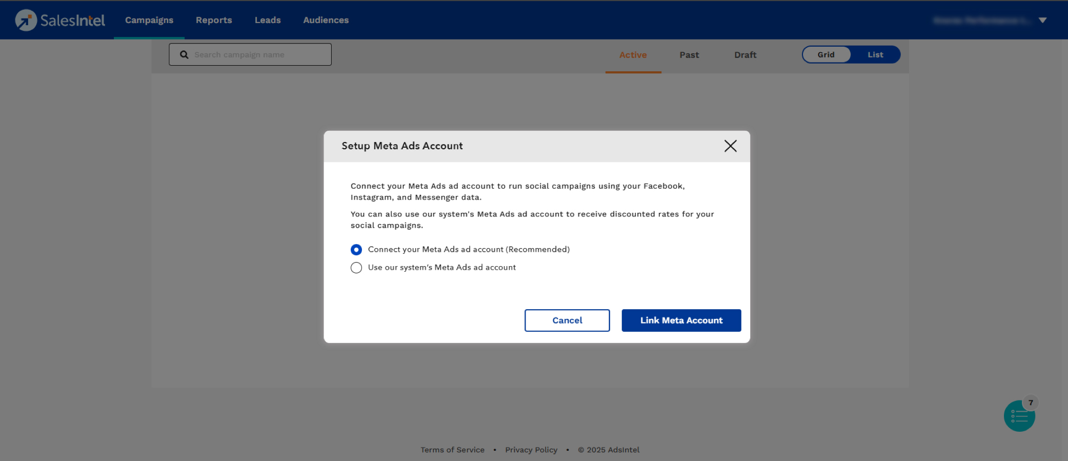 If linking your own account, click Link Meta Account and complete the authentication process. Approve the requested permissions.