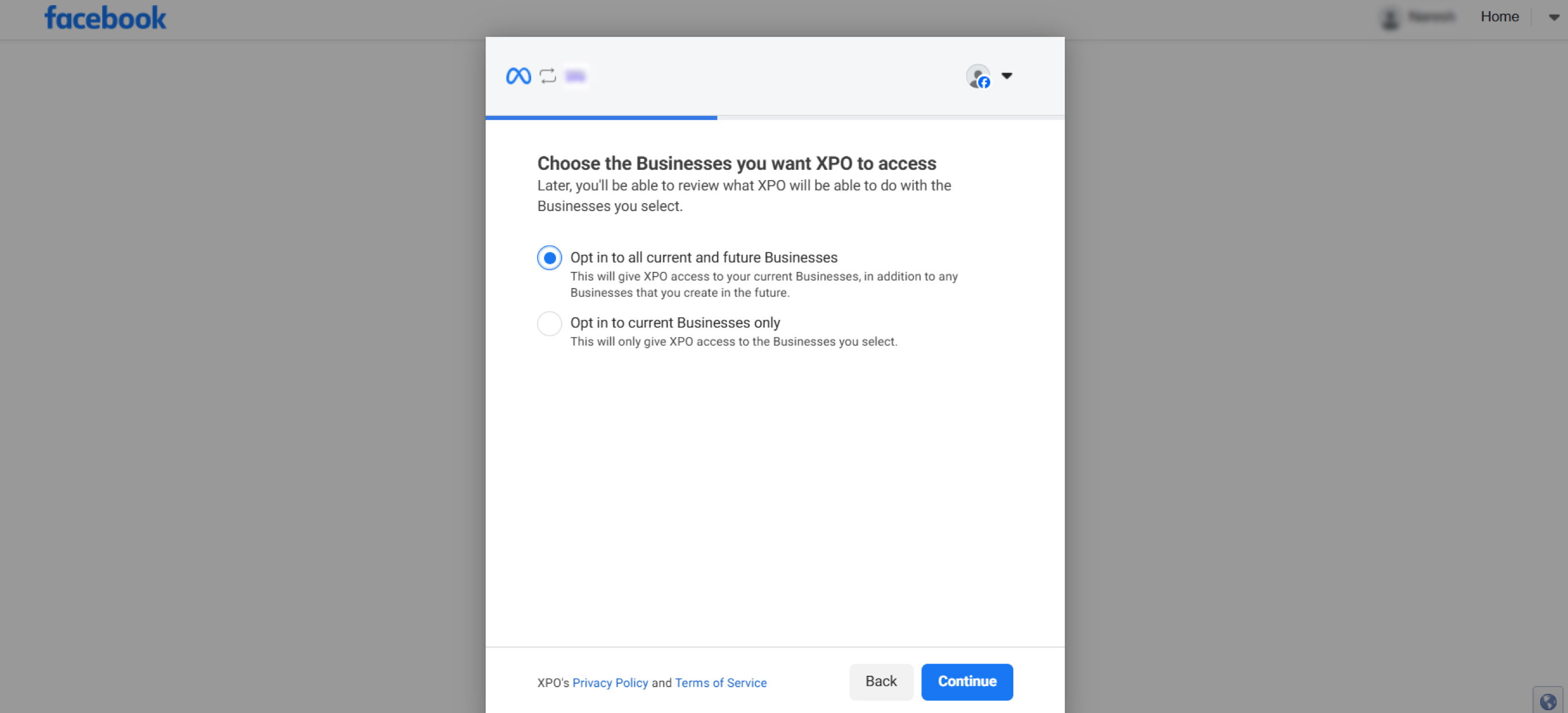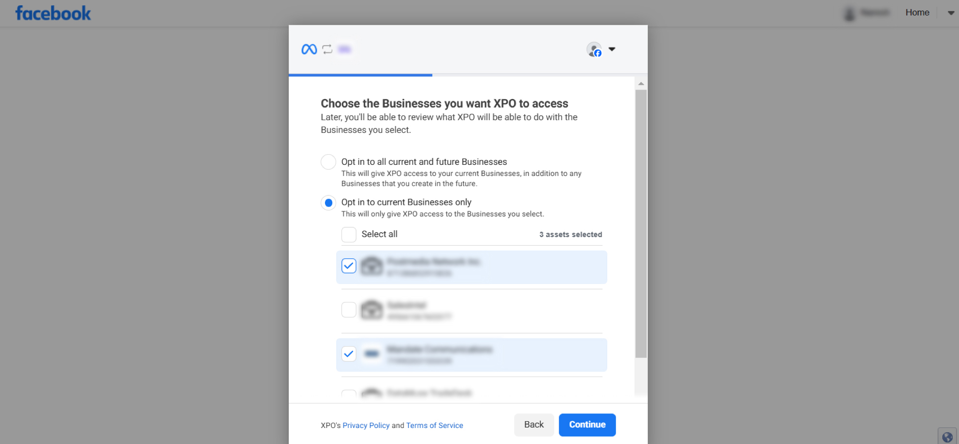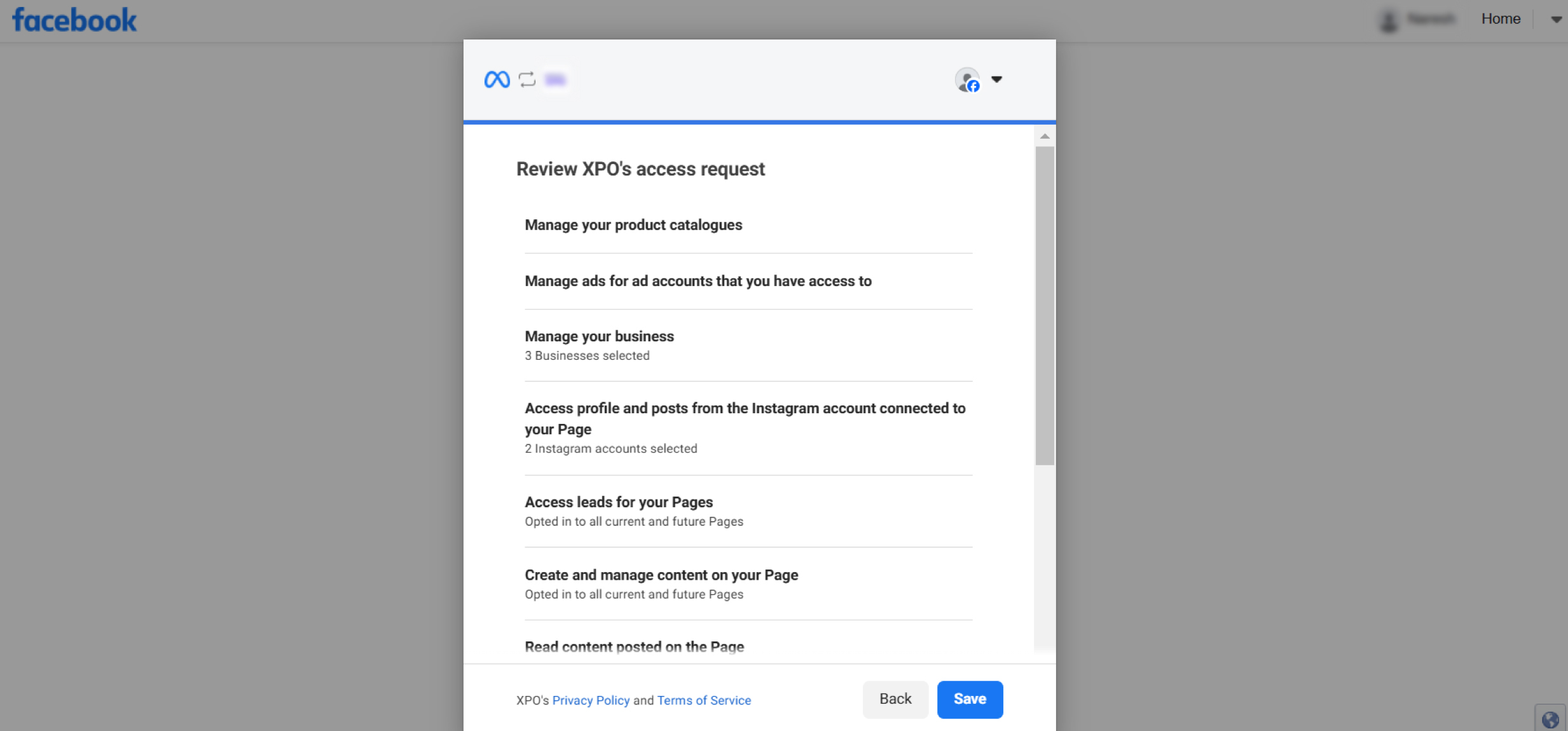 If linking your own account, click Link Meta Account and complete the authentication process. Approve the requested permissions.