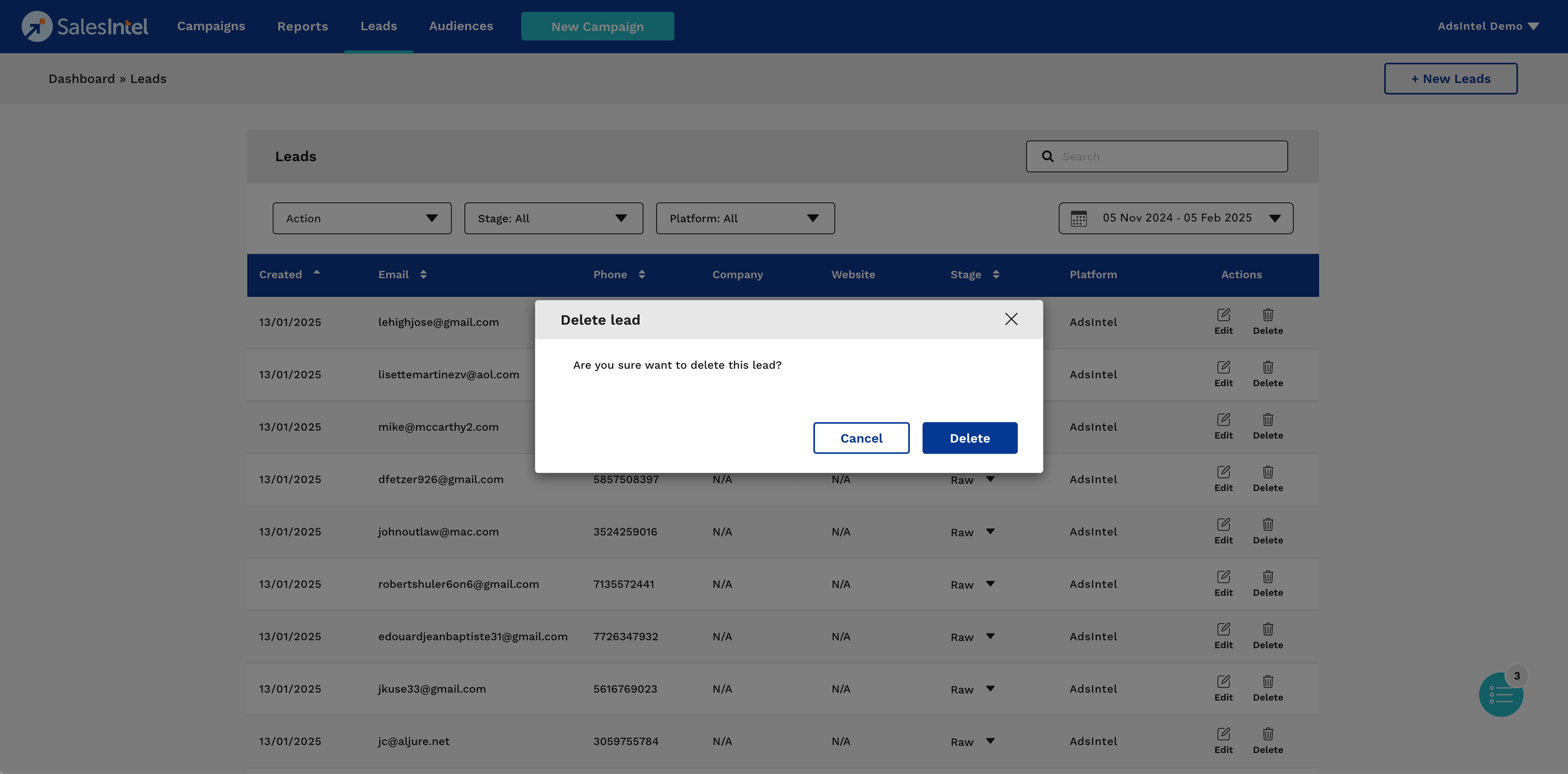 To delete a lead: