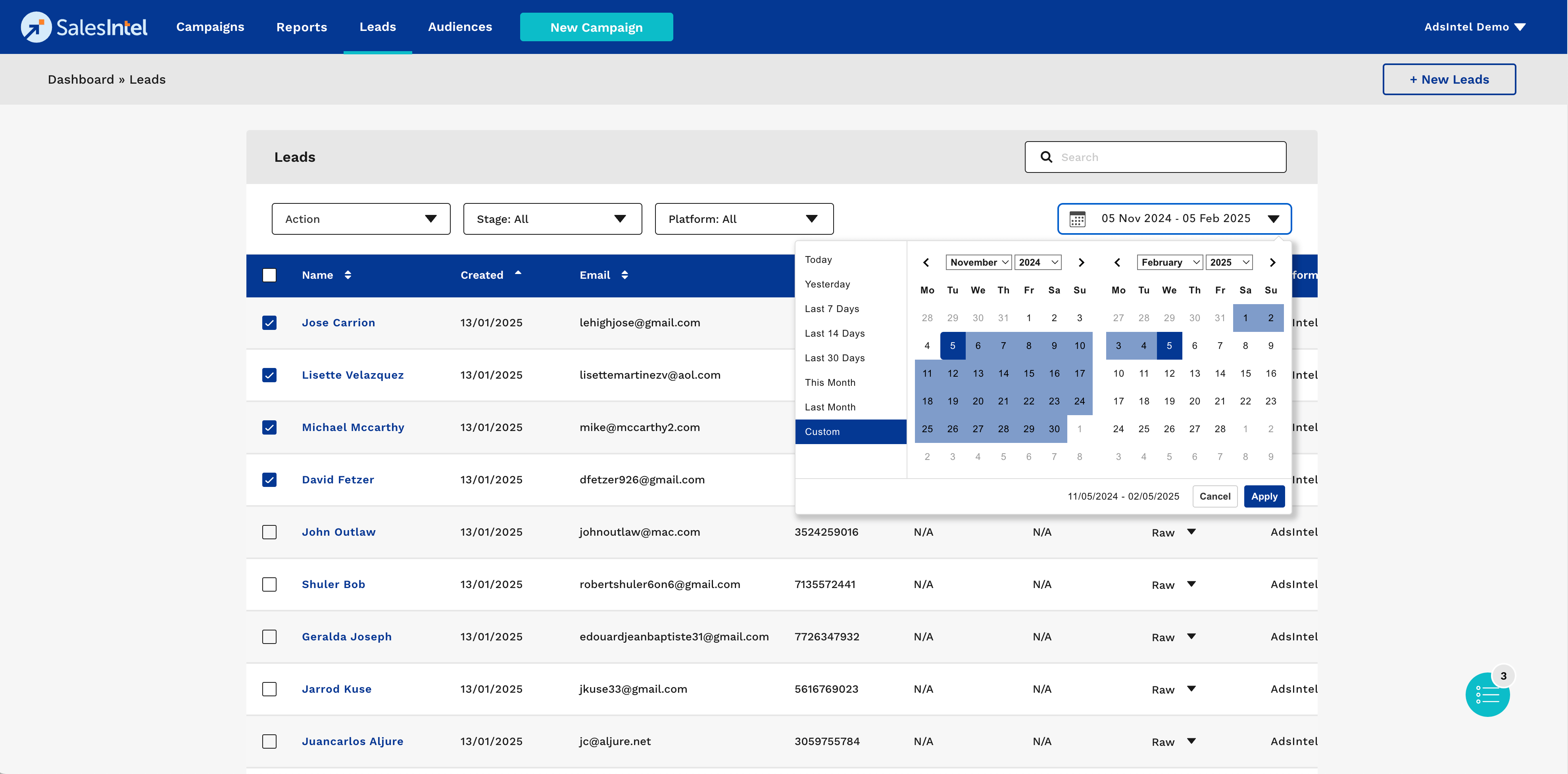 - Select multiple leads using checkboxes.